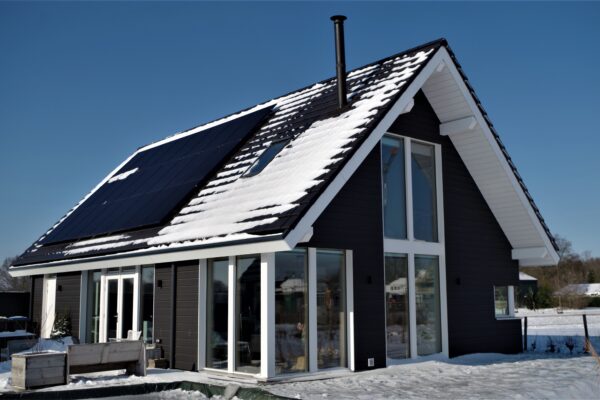Veel onderdelen komen prefab aan op de bouw. De houten gelamineerde palen en balken uit Finland zijn prefab en passen precies in elkaar op de bouw. De prefab houtskeletbouw onderdelen worden in de open vlakken gemonteerd. De overige open vlakken vullen we op met vast driedubbel glas. Alhoewel de woning grotendeels prefab is, gebeurt al het leidingwerk op de bouw. Door onze speciale voorzetwand zijn deze leidingen eenvoudig aan te brengen!